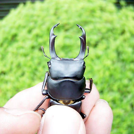 この個体は約44mm程度で、スレもなく立派な本土ヒラタクワガタでした。その日はコクワガタやカブちゃんを数匹ゲットして帰宅しました(残念ながらここでもヒラタはそれっきりでペアとなる♀をゲットすることはできませんでした)。