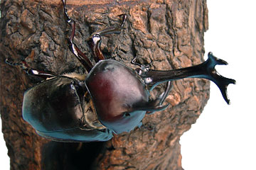 柏原市は古墳が沢山あり、横穴式古墳は洞窟のようで探検好きの小学生には格好の遊び場所でした。小学校の下校途中、道路から脇にそれたくぬぎ林で日中にもかかわらずカナブンと一緒に樹液を吸う大型の甲虫を発見しました。慌てて捕まえるとかわいい角を持った♂のカブちゃんでした。