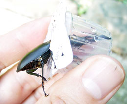 成虫飼育でたまに発生するのが、ゼリーへアゴを突き刺して抜けなくなるトラブルです。