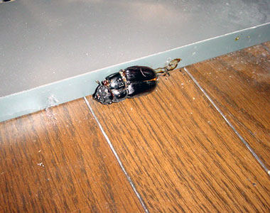 家の中で脱走した成虫を探すのも大変です。大体は階段などでひっくり返っているケースが多いのですが、下記のケースではクローゼットに逃げ込み轢死したケースです。