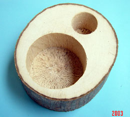 仕上げ用に菌糸の回りを良くする為に、包丁研ぎを使って中央に穴を開けて完成です。