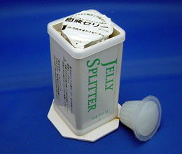 16g、30gのゼリーに十文字の切り込みをいれるためのものです。汁が飛び散るのが難点でベトベトに悩まされてきました。