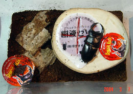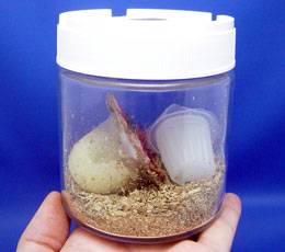 初齢投入用に使用しています。小型種の場合は♀はこの容器のみで羽化させます。