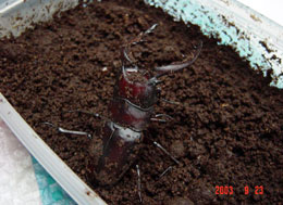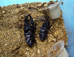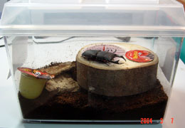 成虫観察専用にガラス製の水槽を使用しています。使用状況は、テラリウムのページをご覧ください。