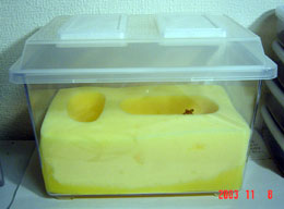 羽化後の成虫一次保管に使用してきました。蛹室から取り出した後の管理に使用していましたが、密閉状態なので小穴を空けなければならないことが難点です。