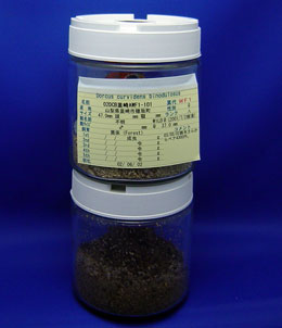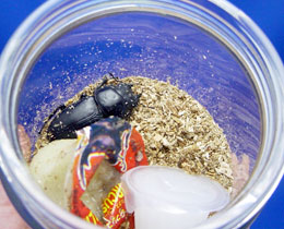 大型の♂の羽化には欠かせないビンです。横幅があり、大きな蛹室が必要な場合でも安心していられます。難点は、円筒ビン同様、タイペストフィルターが必要なことです。1ブロックで2本ほど詰められます。