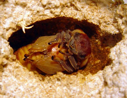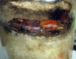 こればかりは、クワガタに聞いて見なければわかりませんが、人間と同様にクワガタにも相性があります。今年も02年型神埼♂と03年型神崎♀(ともに同じ血統)で“不一致”があり、♀が背中に大穴を空けられてなくなりました。