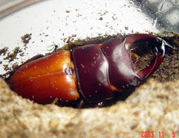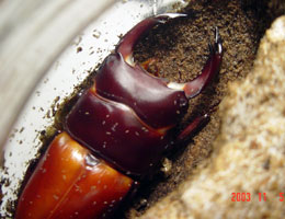人工蛹室(メガエッグ)での対馬ヒラタ♂