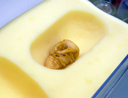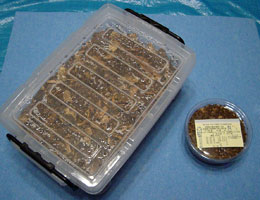 例えば、詰替える菌糸ビンや一次小分けにするプリンカップ、ビンに張る管理シール(私はなかクワさんのクワガタ管理ソフトを愛用しています)などです。温室で産卵させていて、いきなり温度差のある室内に移動して割出をするとあっという間に死んでしまうことがあります。それだけ、初齢の幼虫はデリケートで弱弱しいものなのです。昨年も本土ヒラタの割出で不用意に放置(実際は昼飯を食べていたのですが)したために何頭も黒くなって死んでしまいました。用具なども段取りよく、作業できるようにセットしてから、いざ割出です。
