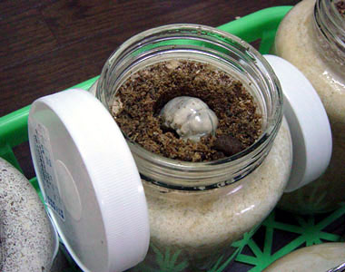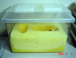 特に自分で詰めたものではなく、ポリなどに詰められたビンを使用する場合には配送後、十分な“ならし”が必要です。ガスが発生したり、高温になっている場合もありますので幼虫投入後に暴れたりして無用な体重ロスを招かないよう注意が必要です。