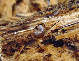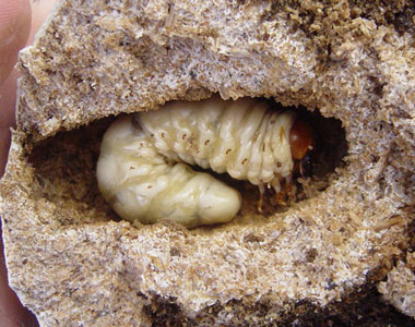 幼虫は楕円形の蛹の部屋を作り始めます。