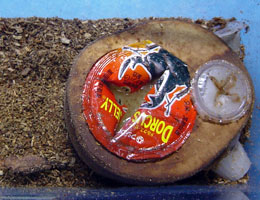 私の場合は、コバエシャッター小でペアリングしています。仲良く食事ができるように木の餌皿に60グラムの高タンパクゼリーと16グラムの乳酸パワーゼリーをセットして、先ずは♂から先にいれて環境にならしてから♀を投入します。念のため、2週間ほど一緒にさせることもありますが、無用の事故(♂の♀殺し)を防ぐためにも短期間で切り上げたいところです。人によってはハンドペアリングで目の前で何度が交尾させて終了にする方もいます。まあ、好みの問題ですが2頭が仲良く餌皿の下で添い寝しているのを見るのもほのぼのしていて良いものです。