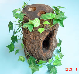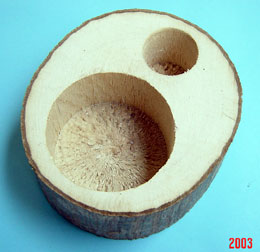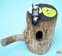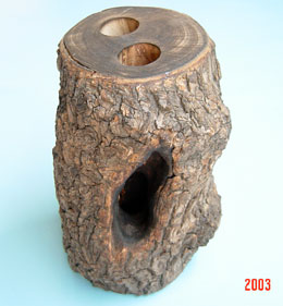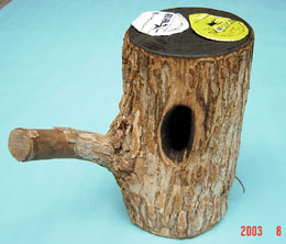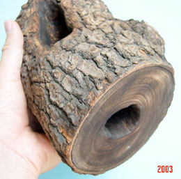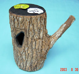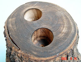 前後に2つの樹洞があり、枝までついているタイプです。やはり、てっぺんに16gゼリー用の穴が2箇所空いています。色調が明るく雰囲気が大分異なります。主にヒラタの飼育にしようしています。中型樹洞タイプ