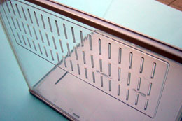 手ごろな大きさの水槽を近所のペットショップで購入しました。前面ガラスばりになっており、傷つきにくく、また傾斜が付いているので少しオシャレです。今年は昨年に引き続き、初めて我が家で羽化したHBオオクワを飼育します。