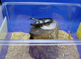 直射日光の当たる場所は厳禁です。ついつい鑑賞しやすい場所(明るく場所の良いところ)に置きたくなりますが注意が必要です。昨年初夏に窓側の陽の当たる場所に置いたところ佐賀産の♂を熱中症で死亡させてしましました!?